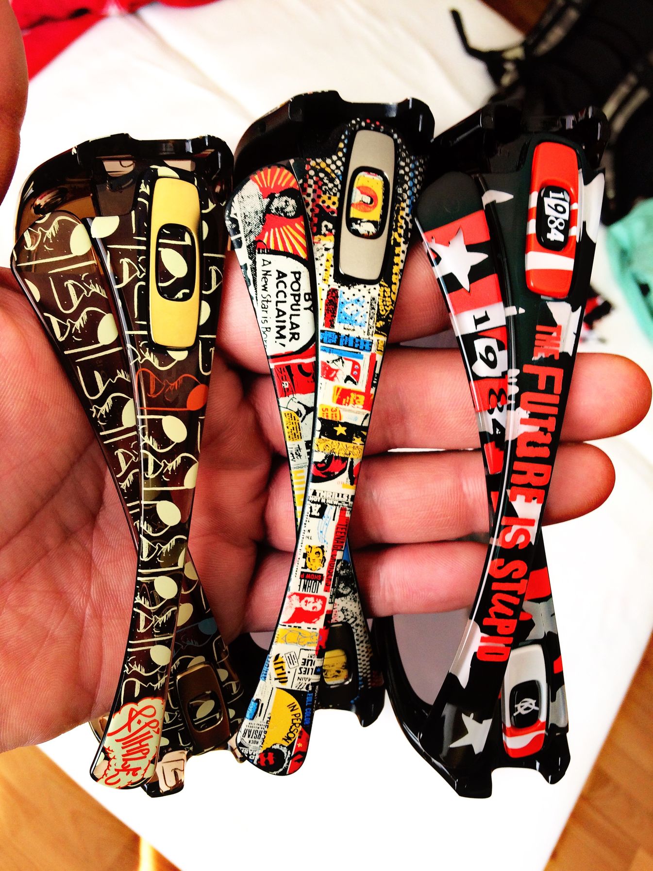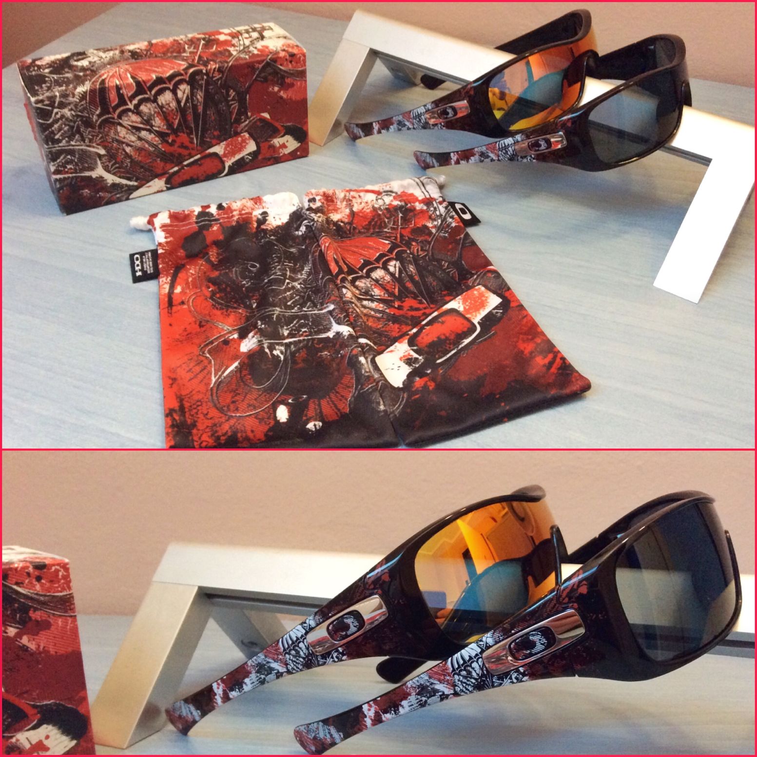 Nekem egy “gascan”-om van amiről azt gondolom, hogy nem fix az eredetisége, lencse felett a keret törött, jóóól megragasztva, kukára karcolt lencsék, és házilag a lehető leggányabb módon lefestve valami katonai zöldre, és g.i. Joe-s matricák díszelegnek rajta. Úgy került hozzám, hogy több szemüveget kaptam talán egy spike-ért... és ez “ajándék” volt, a történet hogy miért lett ilyen: afganisztánban szolgáló katonáé volt, aki ott nem kímélte stb.. ő festette anno olyanra amilyen most