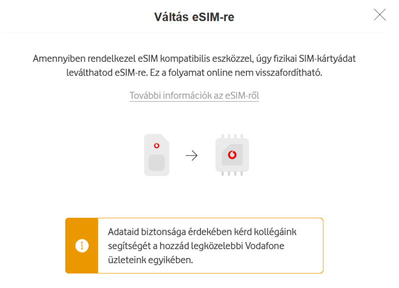 Vodafone-nál pl. minden egyes alkalommal be kell menni - legalábbis amikor a TUTI-s eSIM-et csinálták, akkor ezt mondták, ha elveszik a készlékről az eSIM profil, akkor újra kell kezdenem a folyamatot személyesen, nem lehet átvinni.
