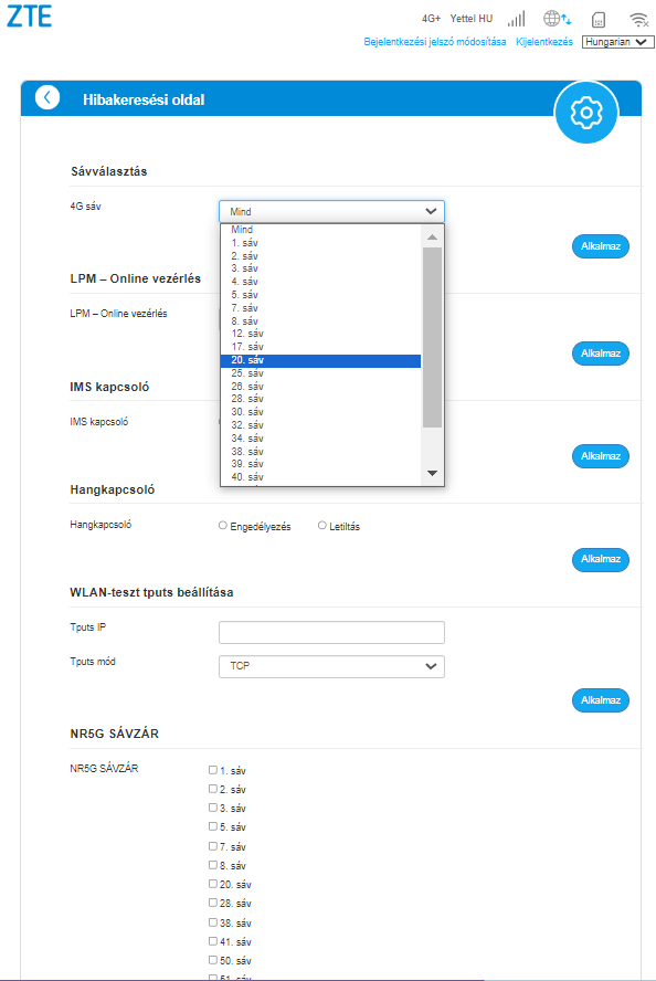 Egy kis segítséget szeretnék kérni. Van egy olyan ZTE routerem, amit a Yettel is, ad, csak független. Eddig csak 4G-s helyen tudtam használni egy flottás kártyával, ott hozta is a 200 megabites értékeket, most viszont olyan helyen vagyok már, ahol van 5G is, méghozzá kiváló térerővel.