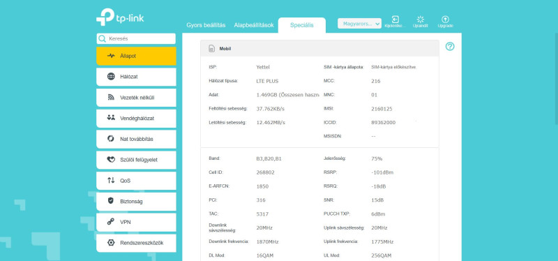 Nekünk Tplink van, de ha 2 eszközön mérek sebességet, akkor se vált 5G-ra. Max amit láttam, hogy B1, B3 és B8-at fog össze.