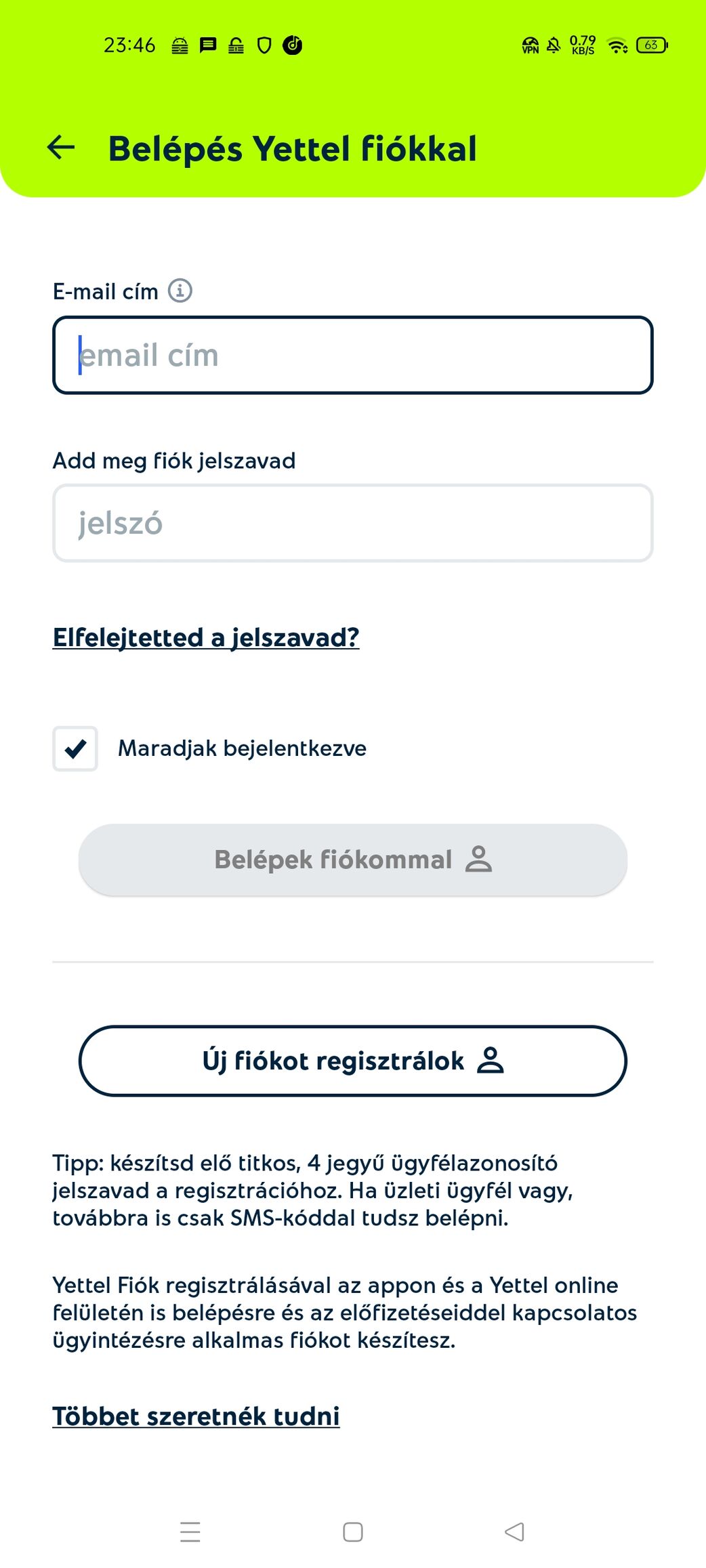 Yettel fiók belépés esetén.