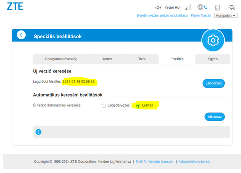 Gyártó??? A Routert nem a ZTE frissíti, hanem a Yettel!