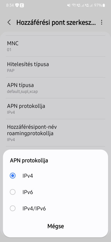 Ezeket már próbáltam mindenféle kombinációval (IPv4, IPv6, IPV4/IPv6), de csak IPv4-es netet ad. Telefont többször újraindítottam, APN-t töröltem, újra felvittem... stb.