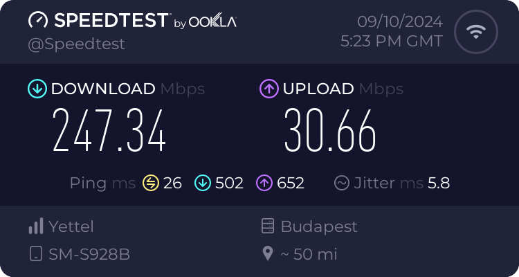 Létezik hogy egy telefon (S24 Ultra) jobb mint egy dedikált célhardver? Vagy otthonnet priorizálva van?