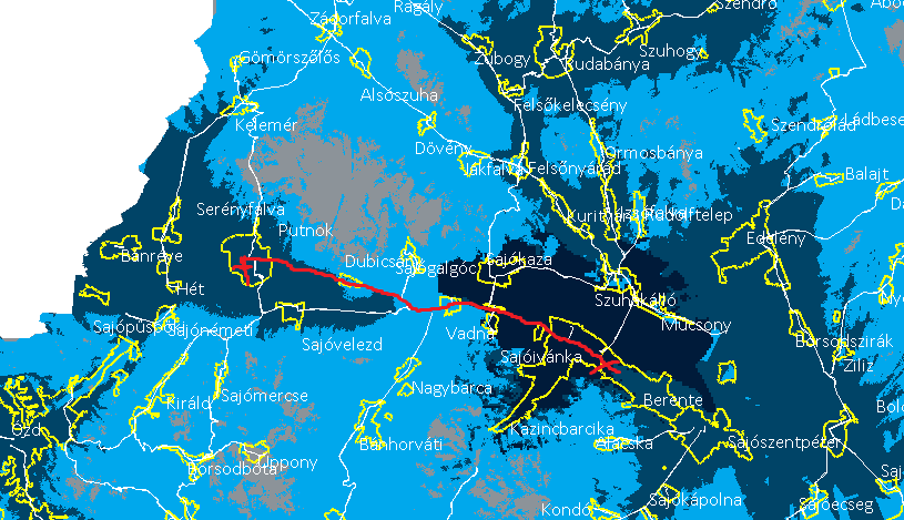 A térkép szerint Dubicsány és Vadna között "meg kellene" szakadni a 3G-nek a telefonon meg is szakad(hiába van WCDMA only-n) a modem (Huawei E 5776) viszont 1-2 csíkkal fogja és csak néha 1-2s-ig akad meg a mytv!