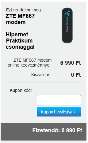 Köszi! Megkérdeztem, jó tudni, hogy a modem árában benne van a Hipernet Praktikum, 3000Ft egyenleg 180 napig használható fel. 1-3k-ért, már érdemes modemet venni.