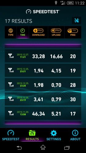 Tegnap dél körül mértem sebességet. Ezt Orosházán sikerült a belváros szélén, csak kiálltam az ablakba. Lg G2-vel.