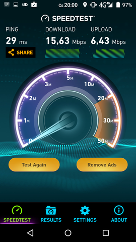 Putnok LTE 800MHz, Hipernet Heavy: máskor 70-90Mbps lefelé és 30-40Mbps felfelé szokott lenni!