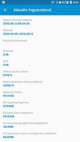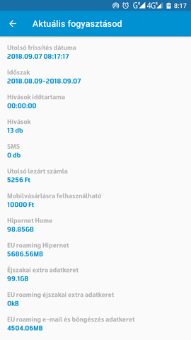 - az appban írt alap keret mennyisége nem egyezik az sms-ben írttal, az sms 7-et ír, az online nézhető helyeken meg 8.5 van alapkeretként. Ez nem tájékoztató jellegű, hanem hibás beállítás valahol.