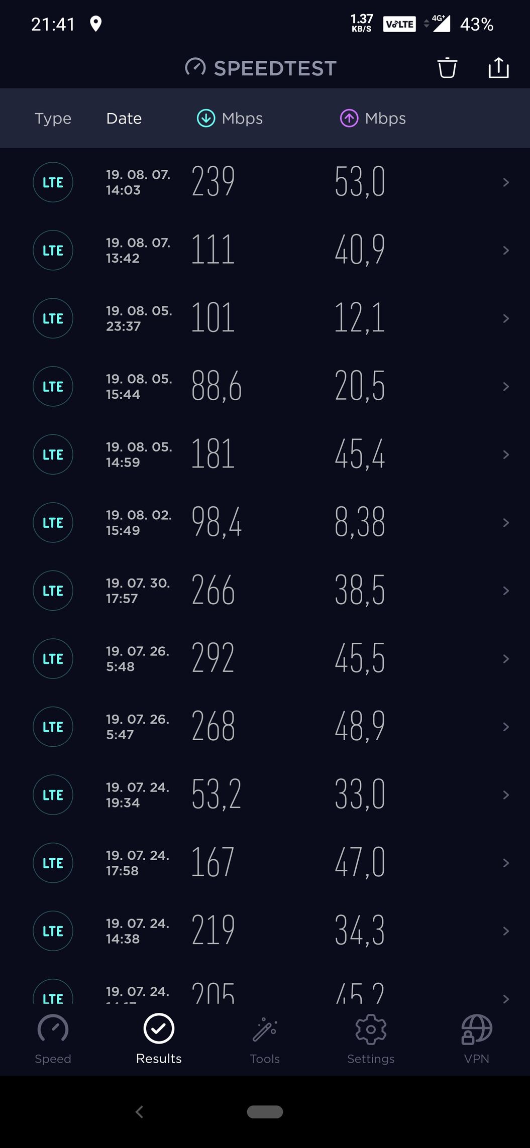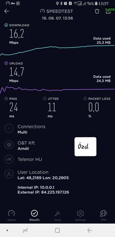 Ma mértem egyet ismét, és már LTE-CA van, 80 Mbps felett tud is folyamatosan a hálózat.