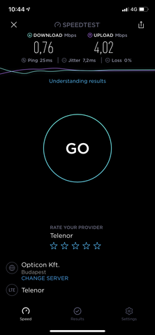 Székesfehérvár, Budai út: A nap nagy részében 50/20Mbps, de este/éjjel van, hogy mérek 90/45Mbps körül is.