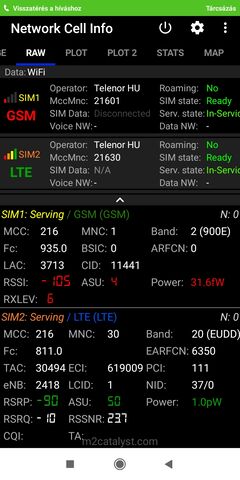 Nincs VoLTE, nem támogatott, szolgáltatói oldalról tiltott. Telefonon be van kapcsolva. Békés megye legészakibb részén vagyok. A 4G az ment teljes térerővel, mobilnetet próbáltam. De az ugye nem is csoda, mivel látszik is a mellékelt képen, hogy a Telekom hálózatát használja erre. A GSM döglődött, más sem tudott telefonálni. Valószínűleg egy jóval távolibb településről cseppent ide ennyi térerő. Valamikor volt valami szám a Nokia Netmonitorban, amivel ki lehetett számolni, hogy miylen távolságra van a bázisállomás. Azt hiszem az ott lévő számot 550-el kellett szorozni, úgy jött ki a távolság km-ben.
