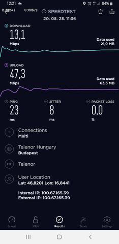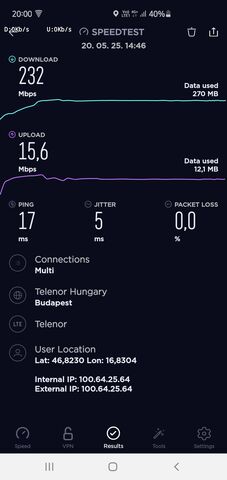 A VoLTE bevezetése óta látványosan lassult a hálózat. Többször is jeleztem, de semmi javulás. Régebben 50-70 is volt a letöltés. Most ennyi:
