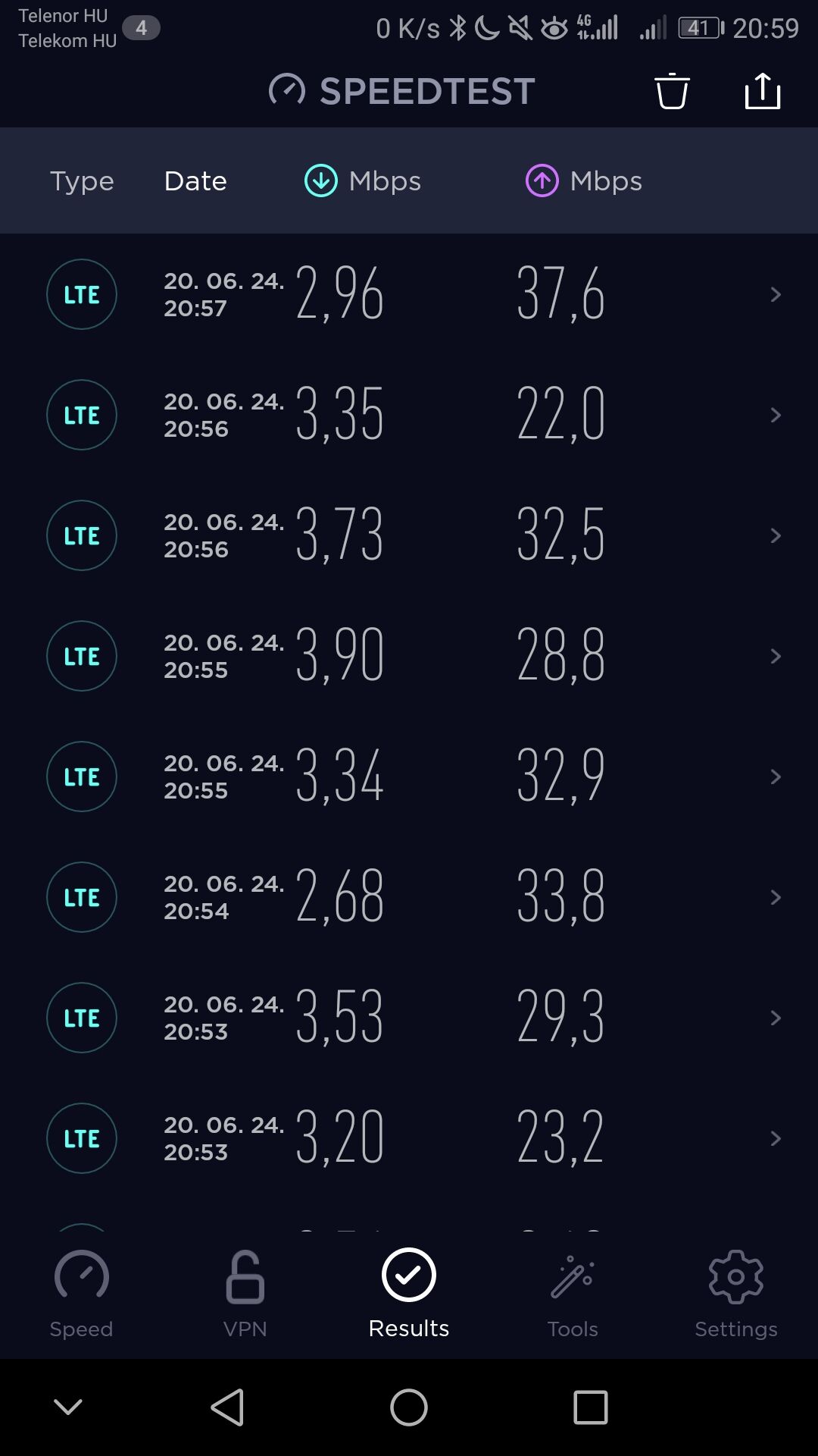 Ki kellene próbálnod az M4-es metrón is hajnalban/kora reggel. Ott csak B3 van és max 93Mbitet tud a hálózat. -
