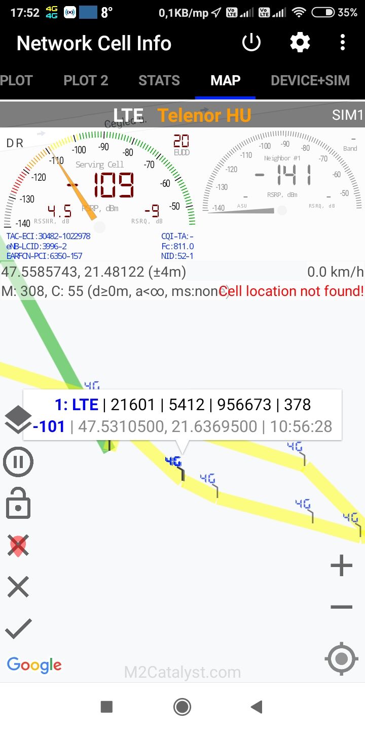 Ahha, ezt nem tudtam. A Network Cellinfoban csak ennyit tudok vissza nézni: 1:LTE/21601/5412/956673/378