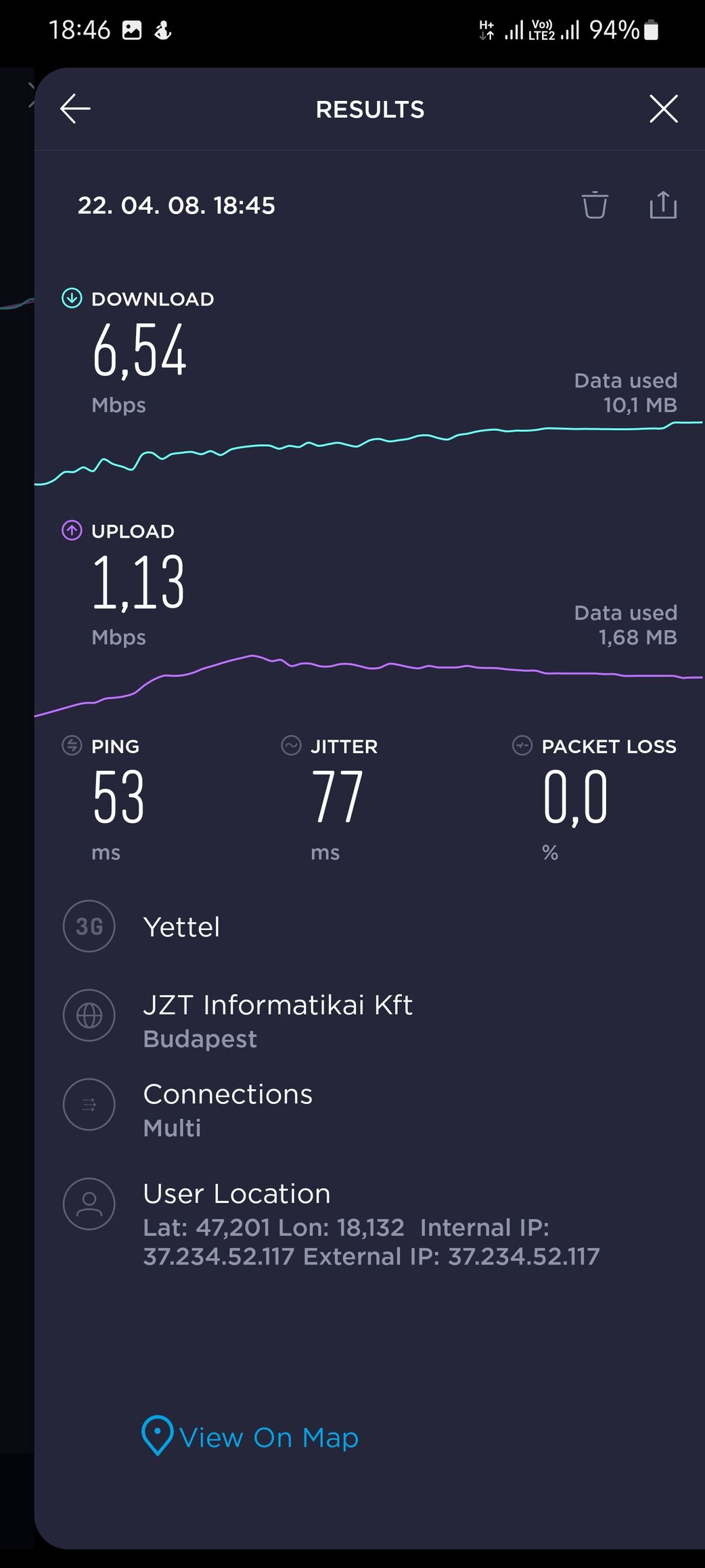 Győben Révfaluban lakom ,Mobilnet max 5-10mbit/sec. Face, insta atom lassú több weblap lassan tölt be, kapcsolat 4G vagy 4G+, 4-búől 2-3 csíkom van.