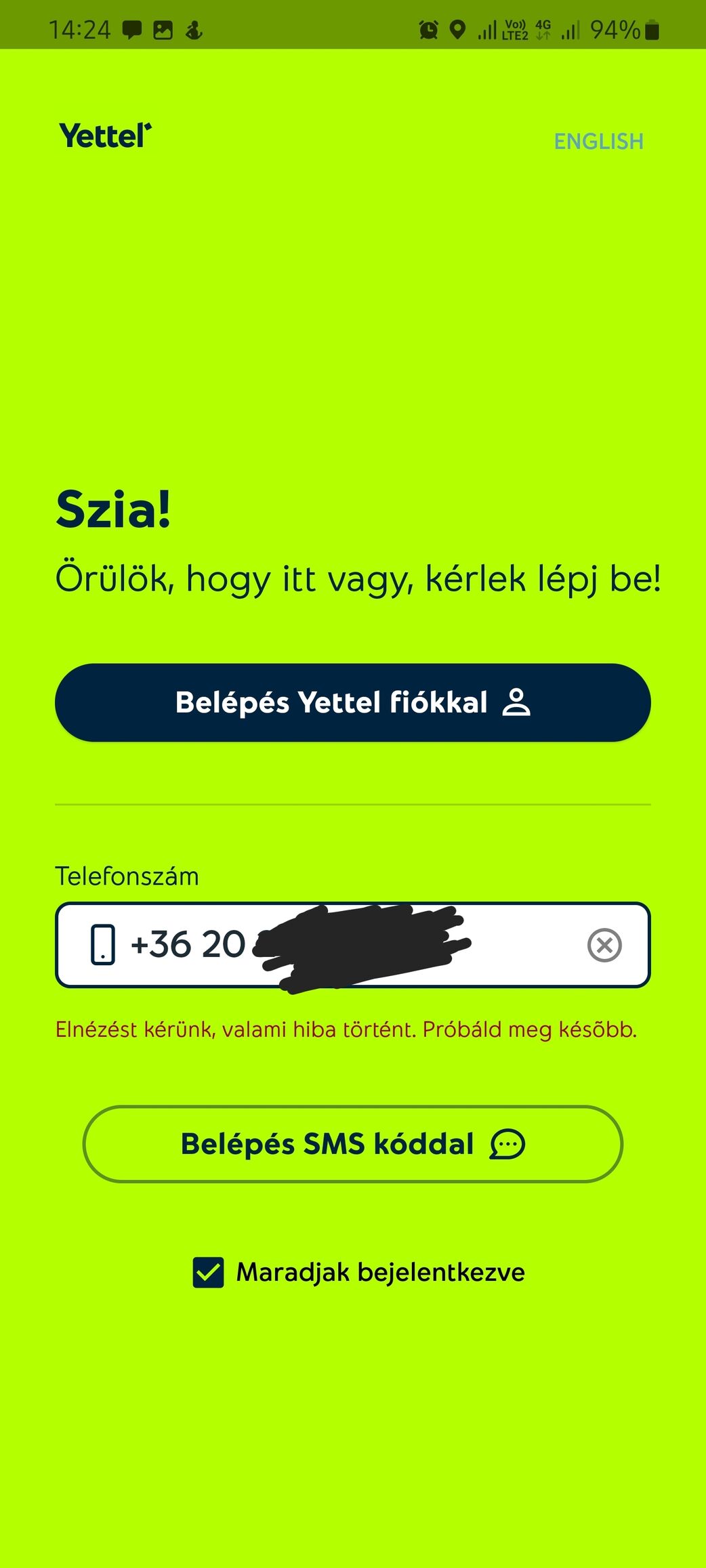 (Üzleti előfizetés esetén nem lehet appba yettel fiókkal belépni).