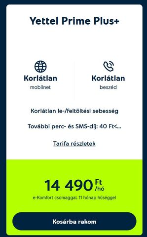 Van mobilelőfizetésem ami dolgozói csomagban van. Nevemen van de dolgozói díjcsomag. Korlátlan beszélgetés, korlátlan mobilnet. Azt fizetem, és bementem a kirendeltségre otthon net csomagot yettel tv L csomaggal igényelve. Azt kötöttem meg két év hűséggel úgy, hogy 3 hónap 0 ft, utána 7990/hó. Egyben van számlázva és így most a net is 0 ft három hónapig.