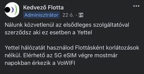 Nem mondott semmi konkrétabbat, csak hogy érkezik.Azzal nem tudok mit kezdeni, ha a 4Gridernek nyilatkozó kolléga (teljesen mindegy, ki volt, de biztosan nem olyan, aki valóban tud bármit is a VoWIFI-ről) félinformációkból, egyebekből összerakott a fejében valami dátumot az indulással kapcsolatban.
