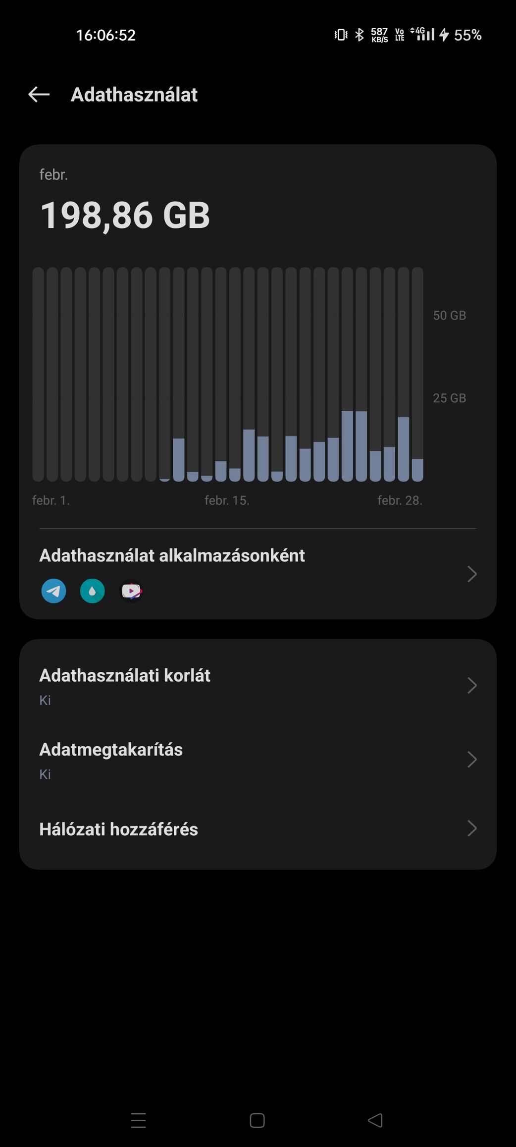 Ha nincs otthoni net, akkor oké. De egyéb esetben, munkahelyen, iskolában gondolom nem lehet sokat netezni mobil eszközön, hazafelé ha vezet valaki, akkor sem..tömegközlekedésen jó esetben ül az ember naponta max 2-3 órát. Erre nekem soknak tűnik az 50, de lehet én vagyok már öreg ehhez. Esetleg éjjel nappal megy a speedtest?