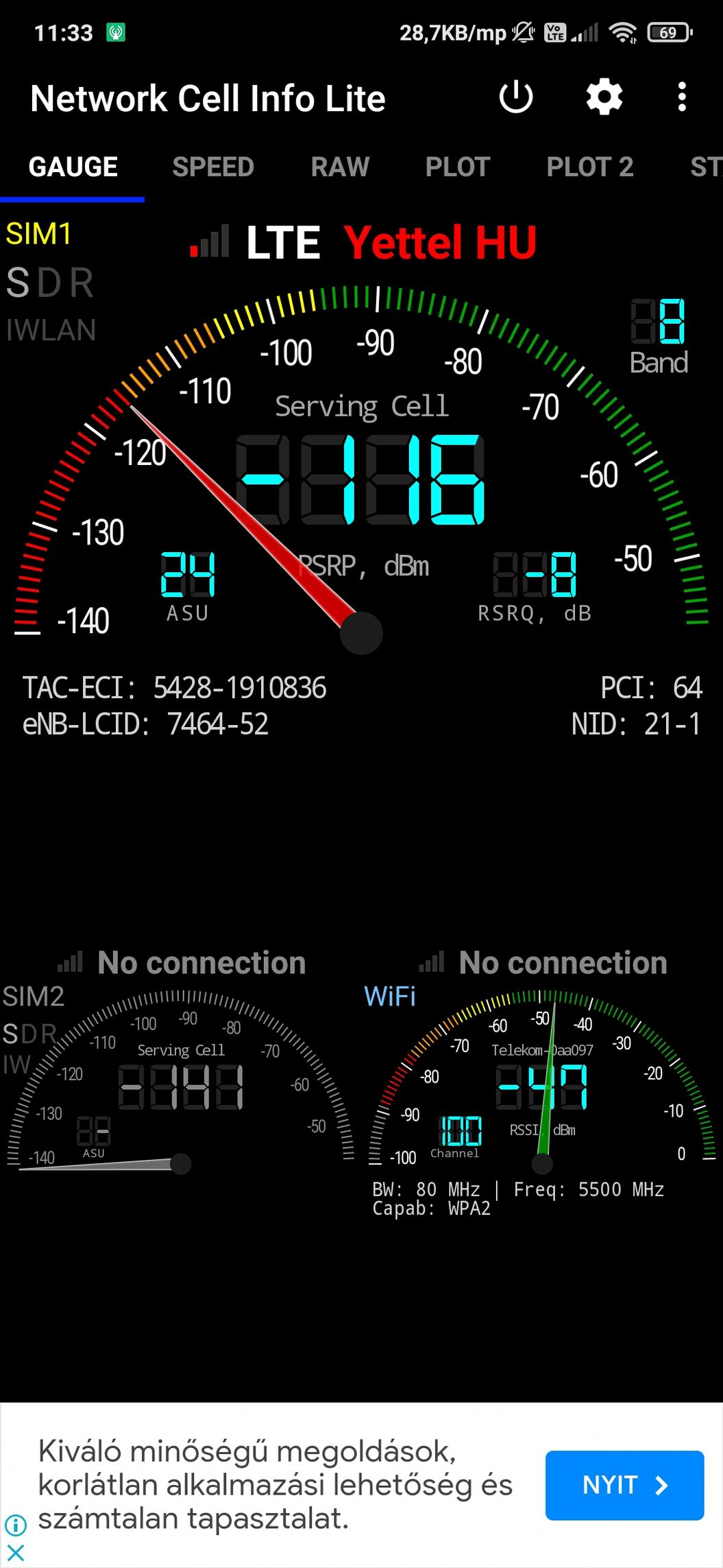 Telekom által van B20, Yetteltől meg megjelent B1-B3-B8-B28 de mindegyiken 150megabit alatt mértem pedig faluban hajnalban kutya se használ mobilnetet és csak ezt a völgyet látja el mivel a többi falunak van saját torony a hegytetőnValami nem oké itt mert párom anyjának Mi 11 Lite telefonja van, csak 4G-s de cacombos azt írja hogy LTE 4x4-et támogat B3 és B7-re plusz 3CA-t is tud de azzal se mértem itt 300megabit felett igazán