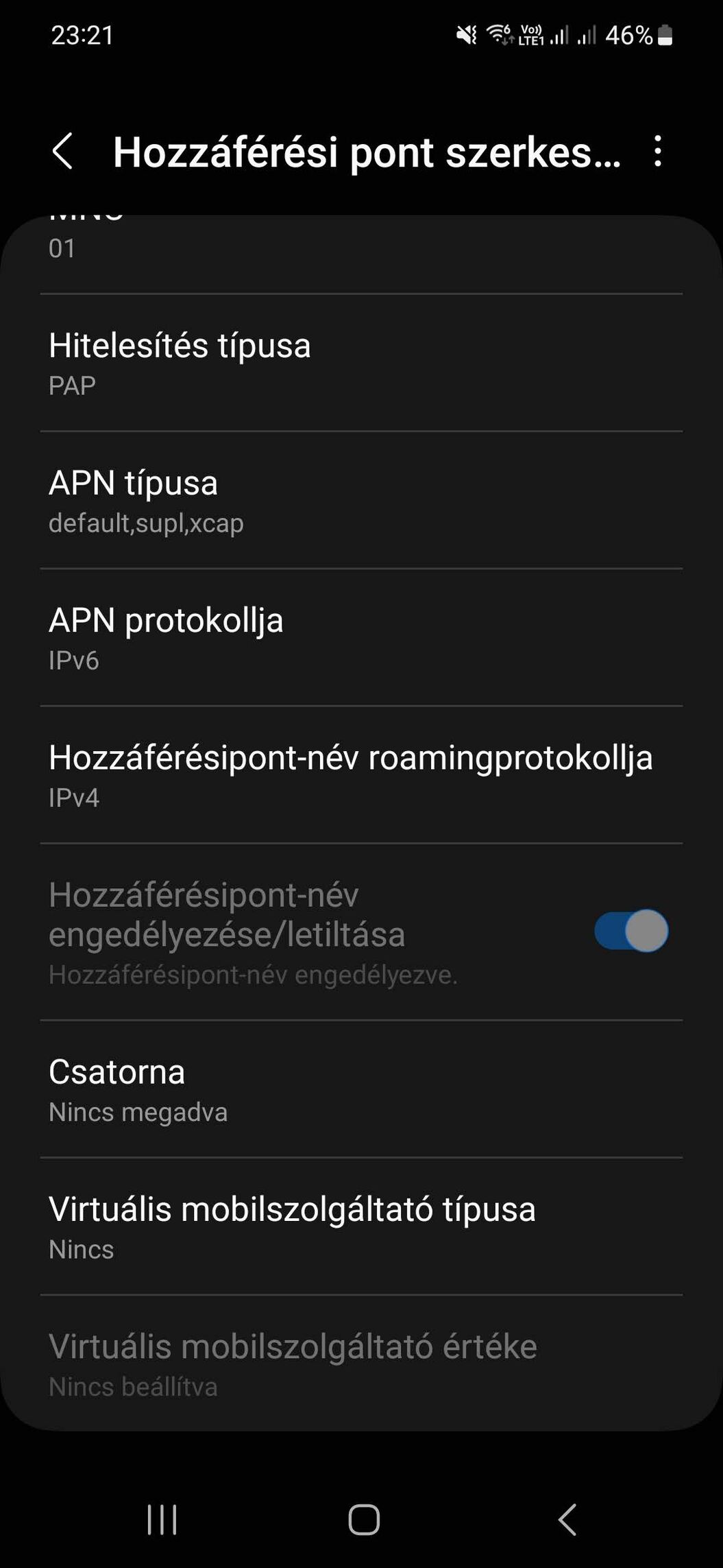 Közben eszembe jutott, hogy korábban volt nekem problémám a Yettel beállításaival. A Yettel konfigurációs fájlja nem jó! Az APN protokol ha IPv6-ra van állítva (ez az alap beállítás), akkor nincsen 4G és VoLTE sem.