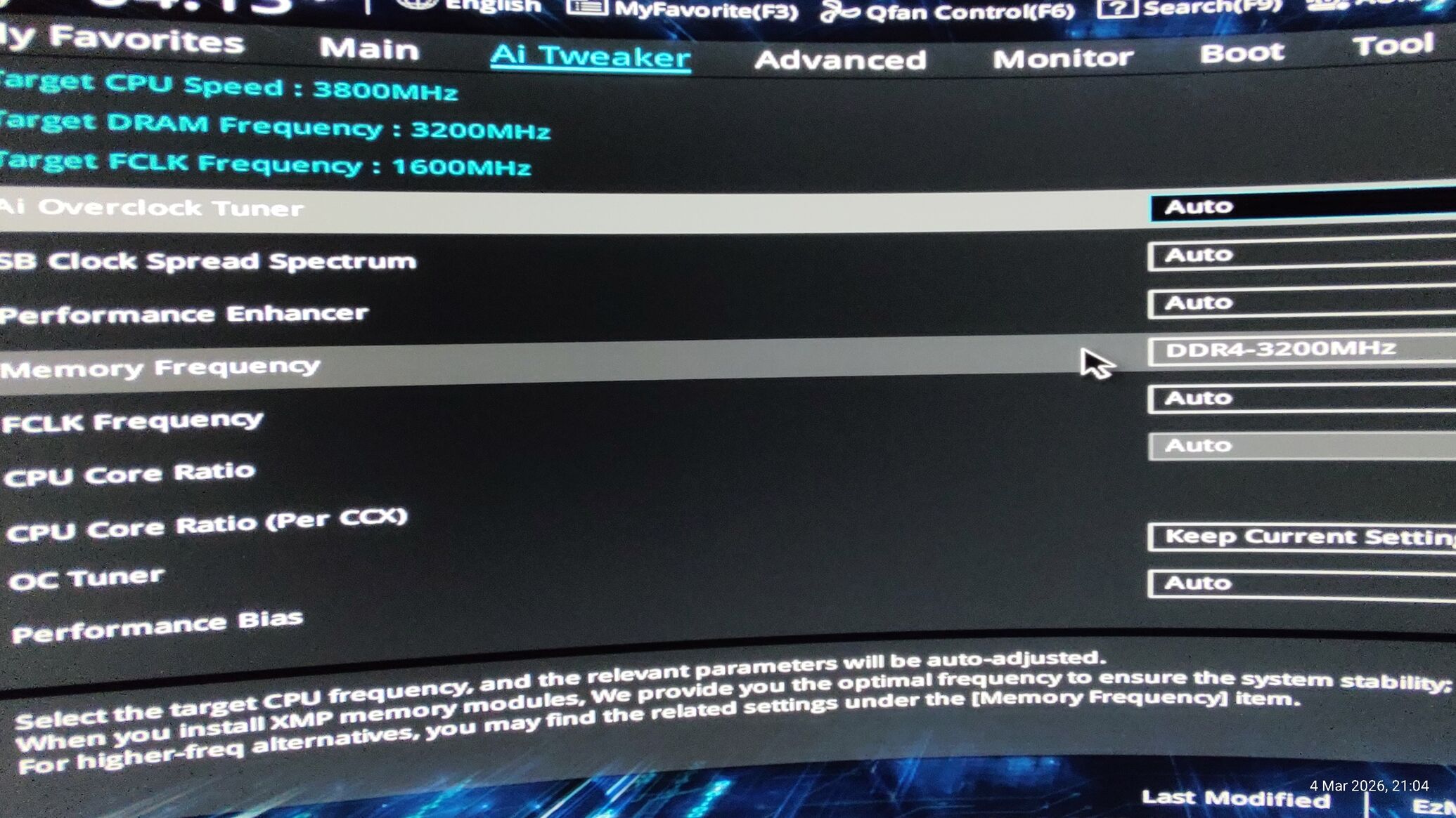 Azt bekapcsoltam Advanced módban, ott ajánlott 3200 és 1600 MHz-t. Mind a kettőt oda állítottam, el mentettem.