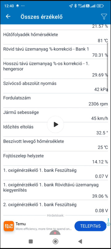 Segítségre lenne szükségem. Renault Megane II 1.4 2004 autónál a rövidtávú üzemanyag korrekció nagyon magas OBD II készülék élő adatait nézve. Van hogy -40% körüli és van hogy +70%. A hosszú távú üzemanyag korrekció meg 15% - 30% körüli. De volt a napokban 40% felett is. Imap érték alapjáraton kb 43kpa. Volt szerelőnél , füstöléses diagnosztikával valamilyen cső nem volt a helyén és a vezérműház dugó készletet kellett cserélni.De ott elméletileg nem is szívhat falsot, csak az olaj folyhat. A map szenzor kábelkötegelővel van oda rögzítve , valószínű az utolsó szerelő oldotta meg így, mert előtte nem láttam kábelkötegelőt ott. Fél éve van nálam az autó. A napokban cseréltem gyertyákat(Denso) és trafókat is(Beru). Rángat az autó, az ülésben érezni és az autó eleje is szemmel láthatóan rángat. , Szerintem map szenzorral lesz gond, vagy AC pumpa, de bízom benne hogy csak a map szenzor rögzítésénél szív falsot. Múltkor vettem különböző O gyűrűket mert ami rajta volt az nagyon laza volt, valamelyik túl vastag volt, nem ment be egyáltalán olajozva sem, a vékonyabbal bement de sajnos nem teljesen szoros, oldalra tudom mozgatni és fel is tudom húzni kicsit , valószínűleg nem tömít rendesen. Ahová be dugom a map szenzort , ott kellene lenni valami rögzítő fülnek ? Mert nem látom a helyét , hogy letört volna. Vagy maga a helye, ahová a map szenzor bemegy, az szokott kikopni az évek alatt ? Van erre valami házi megoldás , amivel meg tudom oldani hogy megfelelően tömítsen? Vastagabb O gyűrűvel nem ment be sehogy sem , csak a gyűrű sérült meg. Köszönöm
