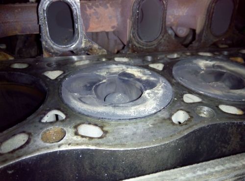 na szét van szedve a motorom, 1es és 4es hengerbe ment belefele a víz, egészen egyszerű okokból: valamikor vezérlés szakadt volt valszeg a motor, ledobták róla a hengerfejet, bontóból hoztak egyet hozzá, megcsiszolták durva csiszolópapírral és egy nem fém hengerfej tömítéssel(a rávaló csak fémben van) felcsavarták és csókolom. ennek eredménye, a hengerfejben nemhogy karcok, hanem szántások vannak a csiszolópapír miatt, a dugattyúkba a szelepek nyoma nem kicsit látszik(vagy a rossz hengerfej tömítés miatt, vagy a vezérlés szakadás nyoma), a hengernek van egy kicsi válla.... a víz nagy gondot nem okozott benne, látszik a hengerfalon, hogy megkóstolta, de nem érzik rajta, csak szellemkép szerűen látszik, hogy a dugó fél állásánál megcsípte a víz.......