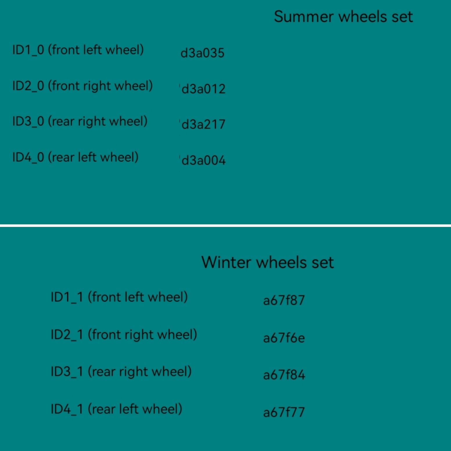 Ez nekem is megvan, a coupe-ra (L3 2011)most került fel az új jeladós szett. A teljes ID számsort beirva mentés után azt átváltva tárolja, de nem találja meg a szelepeket. Több leírást találtam. Van, ahol azt írják, hogy aktiválni kell, Valahol azt, hogy csak írd be a számsort, más pedig csak az utolsó 6 számjegyet mondja. Mi a helyes megoldás? Korábbi autónál márkaszerviz rendezte, azt most ezzel elkerülném. -