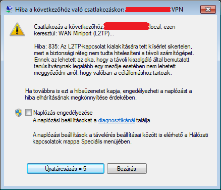 Windows Server 2012 R2 Remote Access Role-nak valami baja van, kliensről csatlakozásnál 835-ös hibával elszáll. Eddig működött.