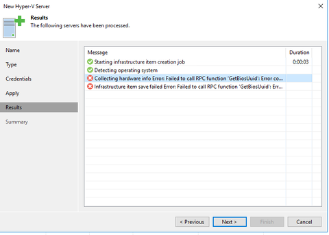 Collecting hardware info Error: Failed to call RPC function 'GetBiosUuid': Error code: 0x80004005. Cannot query class instance from enumerator object.Infrastructure item save failed Error: Failed to call RPC function 'GetBiosUuid': Error code: 0x80004005. Cannot query class instance from enumerator object.