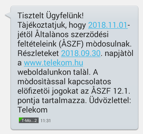 Szerintem is a megszüntetésről. És mivel opció volt, simán vissza is vonhatnák, csak lehet, hogy félnek a reakcióktól. Így viszont szépen lassan mindenki egyszer majd elfelejti meghosszabbítani, meg egy csomóan már az elején elveszítik (elfelejtik / nincs idejük az appal vacakolni / funkcionális analfabéták, akik sms-ben meg tudták rendelni, de az appos regisztráció nem megy). Le is írja az sms-ben, hogy ha az app nem tetszik, akkor keresd az aktuális ajánlatokat, szóval nem is lesz más módja a hosszabbításnak.