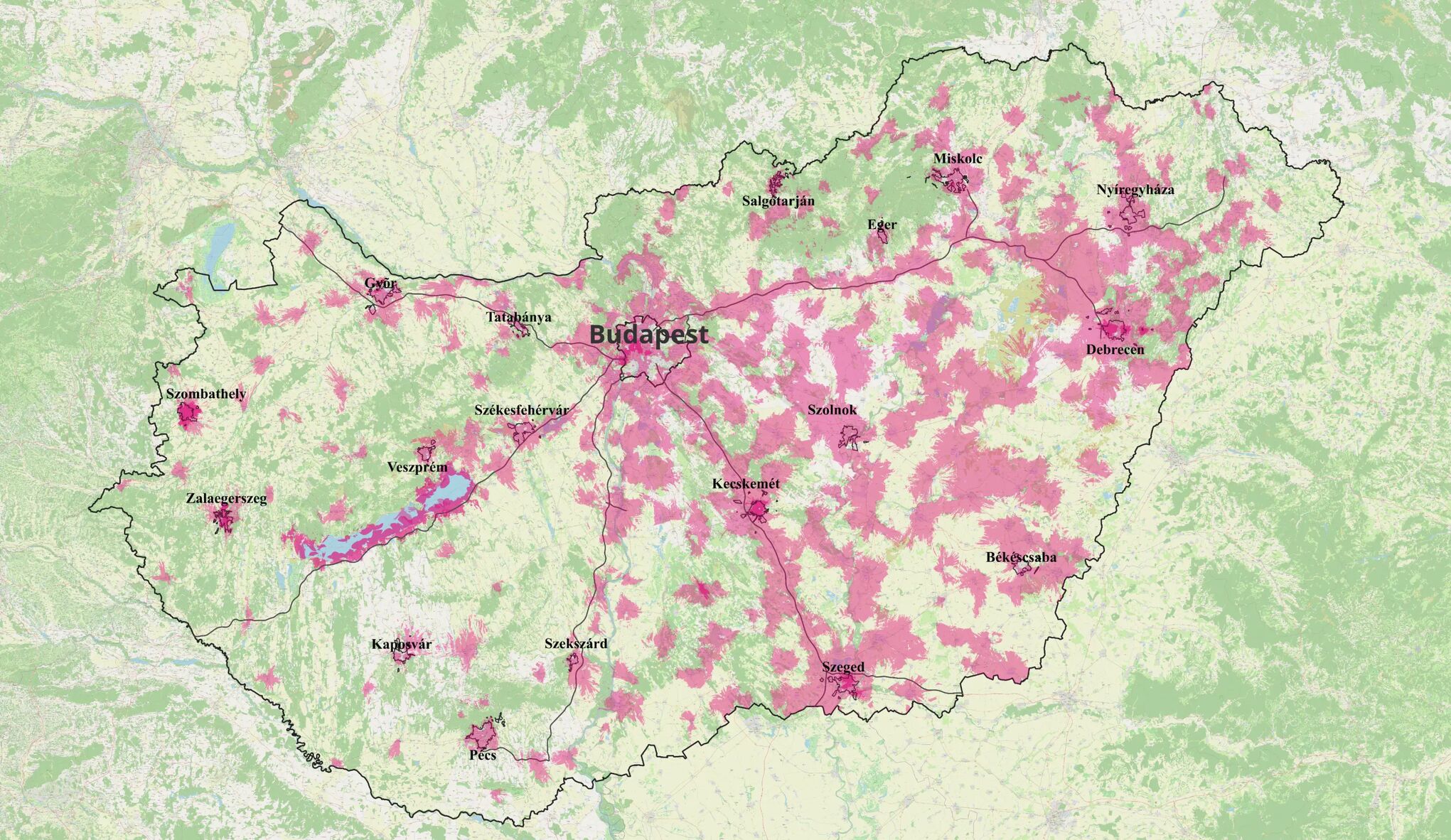 - Környező területek, települések szépen lefedve, míg a megyeszékhely (Békéscsaba) belvárosa, keleti része kimarad a “jóból”…
