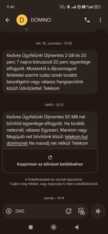 Régebben nem küldött a szerdai Domino Day szolgáltatás lejártával SMS-t a központ?