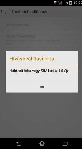 A szombati napon a semmiből azt vettem észre, hogy nem érzékeli a SIM kártyát a készülék. Ezek után rájöttem, hogy érzékeli, hogy bent van, viszont úgy jelzi, hogy 'Érvénytelen', ugyanis a készülék feloldásnál alul kiírja, hogy "Érvénytelen kártya - csak segélyhívások." A kártyához több mint egy éve nincs nyúlva, a telefon nem volt leejtve, egyik percben még telefonáltam, majd rá pár percre amikor feloldottam a készülékem akkor vettem észre hogy valami nem oké. A kártya tulajdonosa én vagyok, letiltva nem lett, a készülék nincs rootolva, soha nem is volt megpiszkálva. Az utóbbi napokban volt frissítés amit jelzett új verziót a rendszerhez, de miután frissítettem azután is jó volt még minden 1napig vagy 2 nemtudom pontosan. Mikor a beállítások menüben a Hívásbeállítások/További beállítások menüpontra szeretnék menni, ezt írja ki: