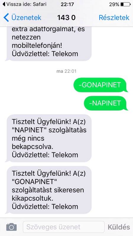 Csuma! nagyon ideges vagyok.. A telekom 21:00 körül bekapcsolta a napinet cucckombót és levett 200 forintot az egyenlegemről (Dominos vagyok) olvastam hogy ezt naponta fogja csinálni mert már másnak is előfordult. Ezt hogy tudom lemondani?
