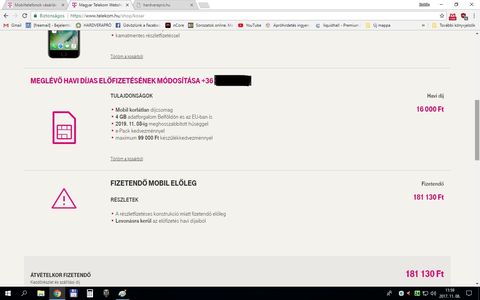 A huszonéves, jelenleg Platina státuszú, korábban sosem problémás előfizetésemre kiválasztottam egy új és drágább (közel 300000 Ft) készüléket (nem IPhone-t, mert annál vannak néha faramuci dolgok), ha aláírnék 2 év hűséget mondjuk a Mobil M + Korlátlan netre (13000 Ft, tehát nem a legdrágább két díjcsomag, hogy 0 Ft legyen a telefon) és nem részletfizetéssel vásárolnám, hanem kifizetném az így adódó ~150000 Ft-os árat az átvételkor, akkor is kér még hozzá a rendszer ~60000 Ft előleget, ha pedig részletre kérem, akkor ~210000 Ft lenne az előleg!