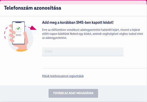Épp most adategyeztettem 3 telót(saját/édesanyám/egyik haver) és az adategyeztetésre kattintva egyből feldobta, hogy kiküldték az SMS-t a megadott számra, adjam meg.