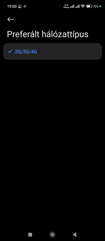 Most nézem a Redmi 13-ban a hálózati preferenciánál, nincs semmilyen választható opció.