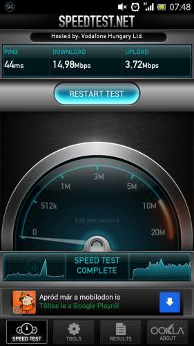 Ebben a hónapban is korlátoztak, és gondoltam nyomok egy speedtest-et, mert semmit se akart betölteni (se facebook, se mobil nézetes ph, semmi) és elég "szép" eredményeket kaptam. A letöltés 0,00 - 0,01 Mbps, feltöltés 0,00 - 0,02 Mbps, ping jobb esetben 160ms, de volt olyan is, hogy 1948(!)ms-ot mértem.