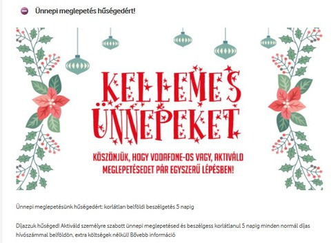 Díjazzuk hűséged! Aktiváld személyre szabott ünnepi meglepetésed és beszélgess korlátlanul 7 napig minden normál díjas hívószámmal belföldön, extra költségek nélkül! Majd később aktiválom 😀