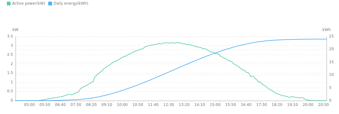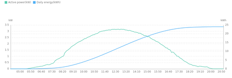Amit láttam a analysis fülön azt végig kattintottam, de nem találtam olyat, ahol látnám az adott napon kumulatívan megtermelt energia grafikonját. Laposan indul, meredeken folytatódik, laposan zár, és az én 6,4kwp rendszeremen jelenleg valahol 37-43 kW körül tetőzik a nap végén. -