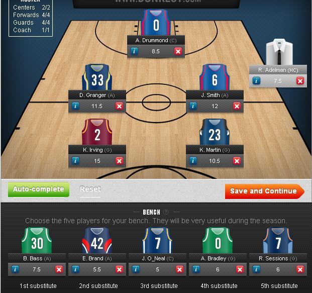 Most nézem a 2k13 játékban van olyan, hogy fantasy draft. Kiválasztasz egy csapatot, minden játékos "free agent" lesz és szabadon választhatsz kit szeretnél a csapatodba, természetesen van egy sorrend, mint a drafton, hogy ki húz először. 7. helyen húzva előtérben tartva az életkort, ilyen csapatot bírtam összerakni: Westbrook, Granger, Hibbert, Taj Gibbson, Dudley, Gerald Green, Brandon Bass, Sefolosa, CJ Wattson, Birdman, Stackhouse, Frye ez a lineup 69.55M-s sapkát jelent. Szerintem a valóságban is eléggé megállná a helyét egy ilyen felállás, nincs nagy túlköltekezés, fiatal tehetséges játékosok vannak a csapatban, a padon is fiatal tehetségek ülnek és ott a kötelező 2 veterán is.