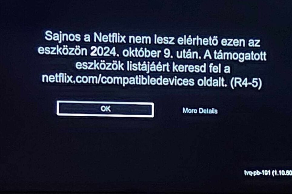 Többször eltávolítottam és újratelepítettem a Netflix appot, egyszer megjavult, azóta jó. Nem találtam magyarázatot a miértre. Nem hiszem, hogy a tv firmware-ének frissítése segített volna (nem csak én használom, lehet, más frissítette, bár ezeket én szoktam csinálni, többiek kihagyják).