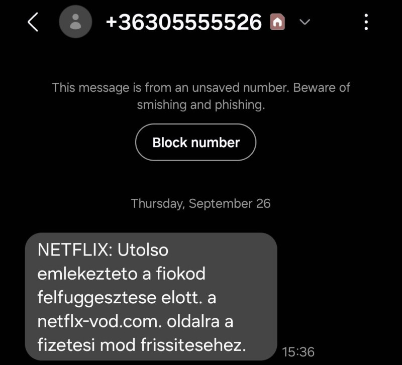 A netflx-vod.com weblapcím egyből gyanút kell, hogy keltsen.
