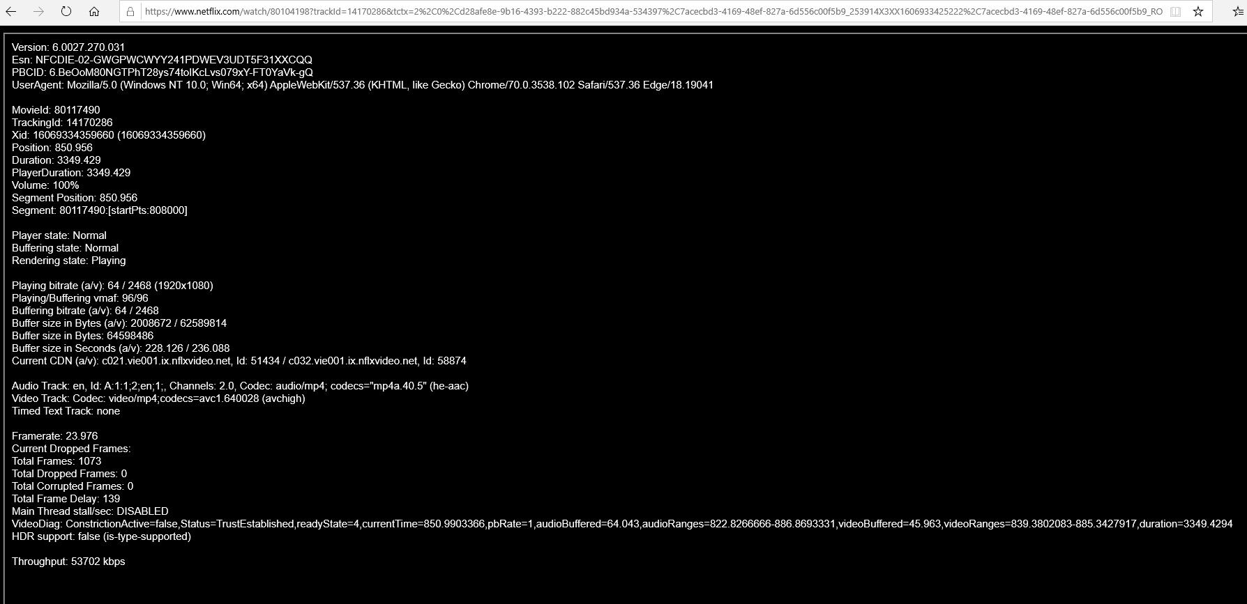 Ha áthazudom a user agent-et Edge-re az Edg-ről, akkor el sem indul a lejátszás. -