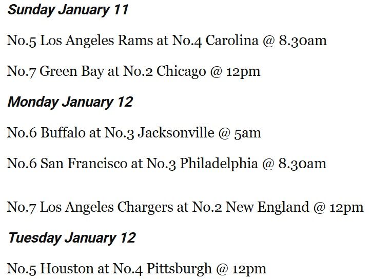 -49ers: remélem kiverik a Phillyt, bár ez inkább csak remény.A többi meccs is lehet jó, csak kicsit kevésbé érdekelnek az ott szereplő csapatok.