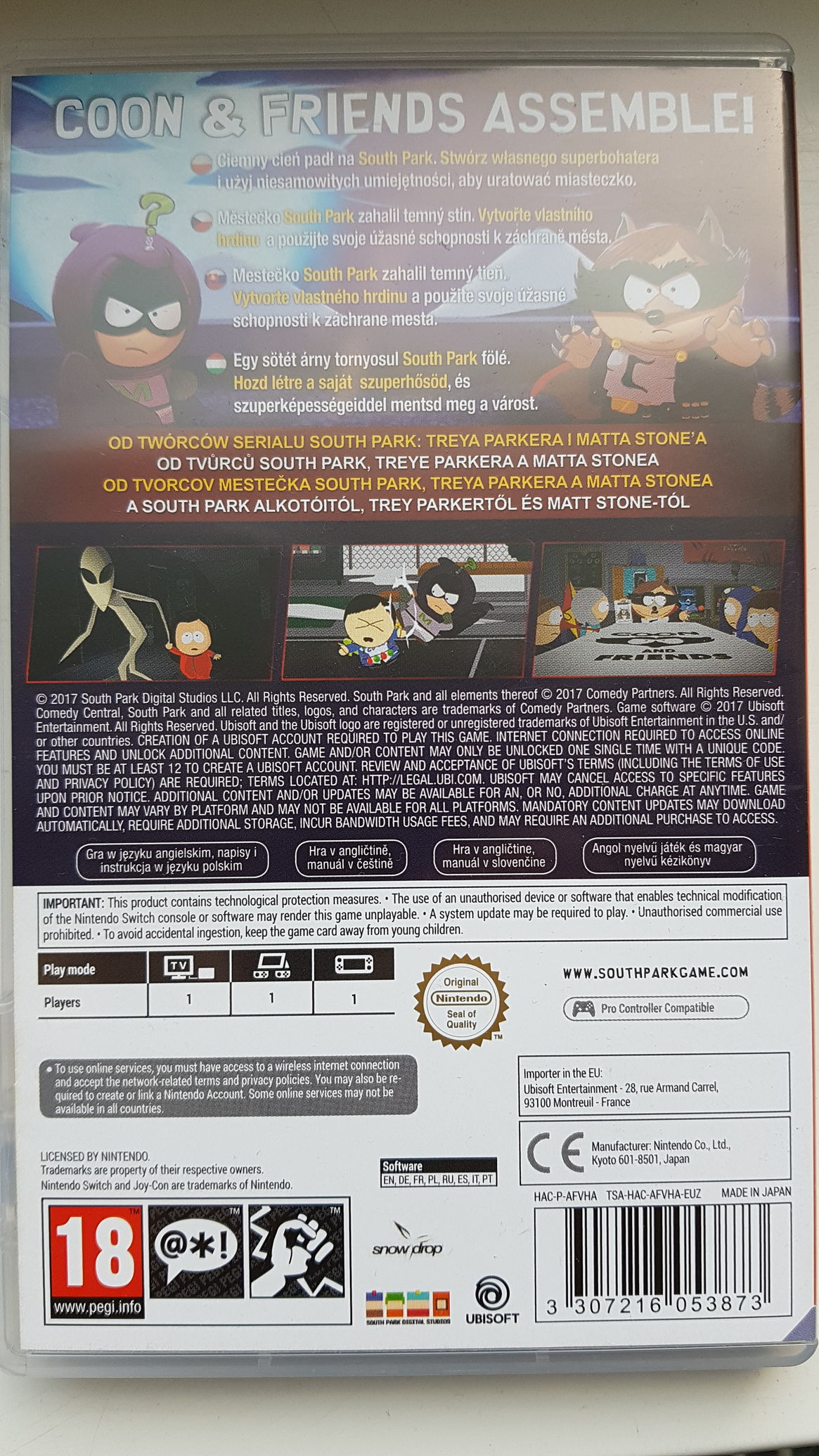 A South Park játék beszerzése újabb fordulatot vett, ma reggel hívtak a Gameparkból, hogy csak német borítóval kaptak egyelőre, így inkább megvettem az 576-ban (ott angol a borító, illetve hátul a szokásos magyar és még pár környező ország nyelve - ezeket a borítókat sem túlságosan kedvelem, tök felesleges szerintem lokalizálni, ha a játék úgyis angol - arra mondjuk kíváncsi lennék, hogy mi alapján döntenek a lokalizálás mellett, elég sok itthon vásárolt switch játékomnak teljesen angol borítója van).