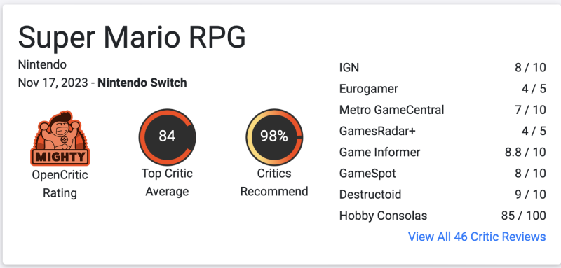 1-2 h.sz erre mutatott, csak ezért írtam.Amúgy a Super Mario RPG is ma jelenik meg… valahogy az időzitéssel nem foglalkoznak, ma BF, a Wonder a Spider-Man 2-vel egyidőben jött ki…